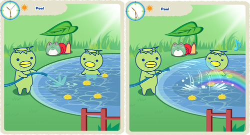 お風呂の色が毎日、ちょっと変わっていたりと(入浴剤入れてる設定)